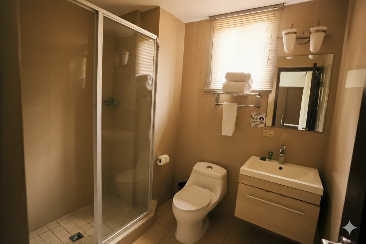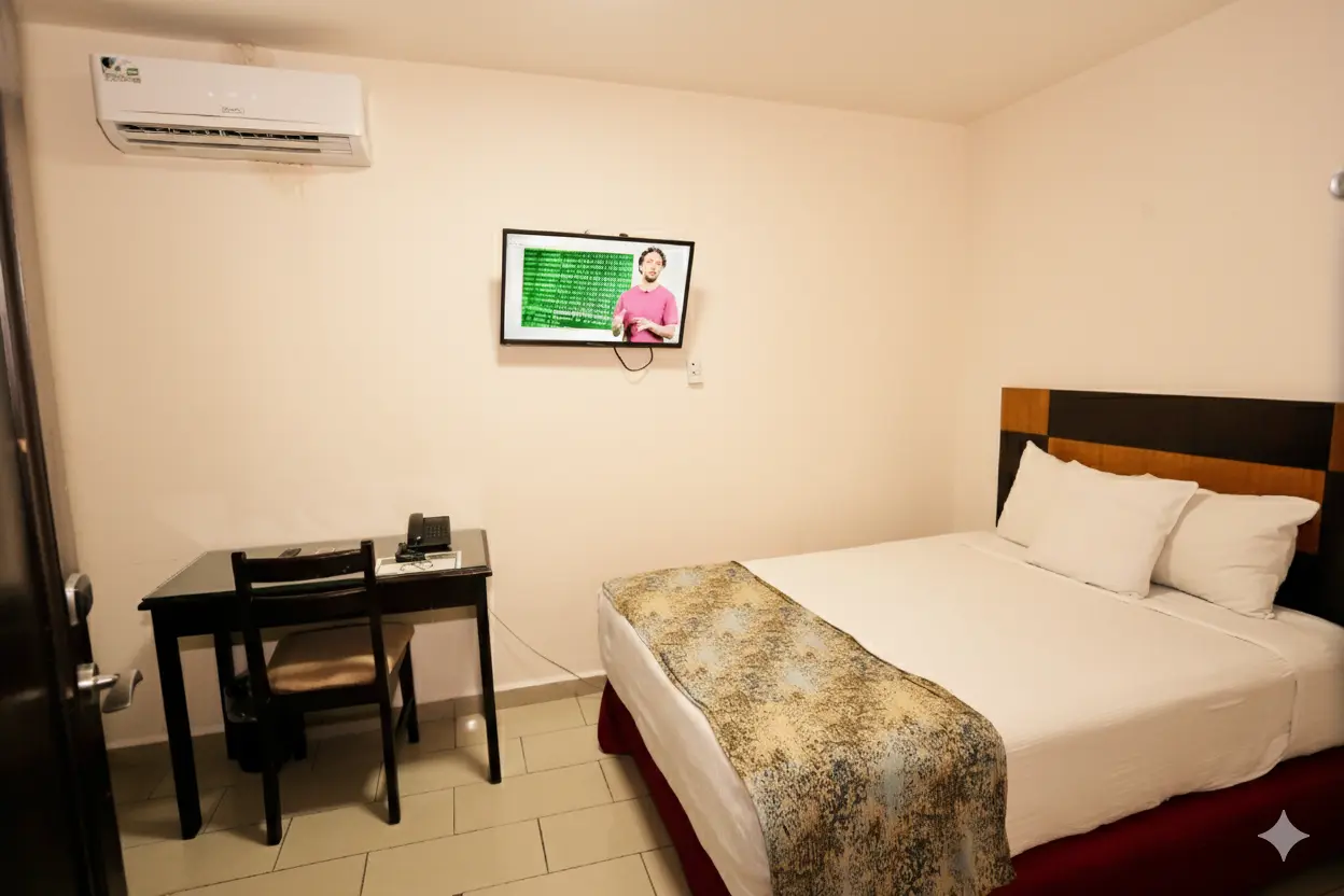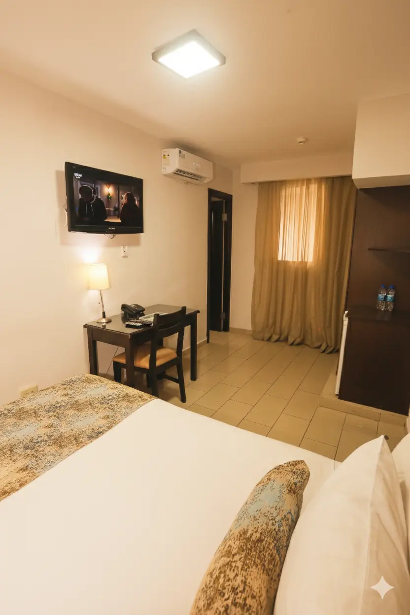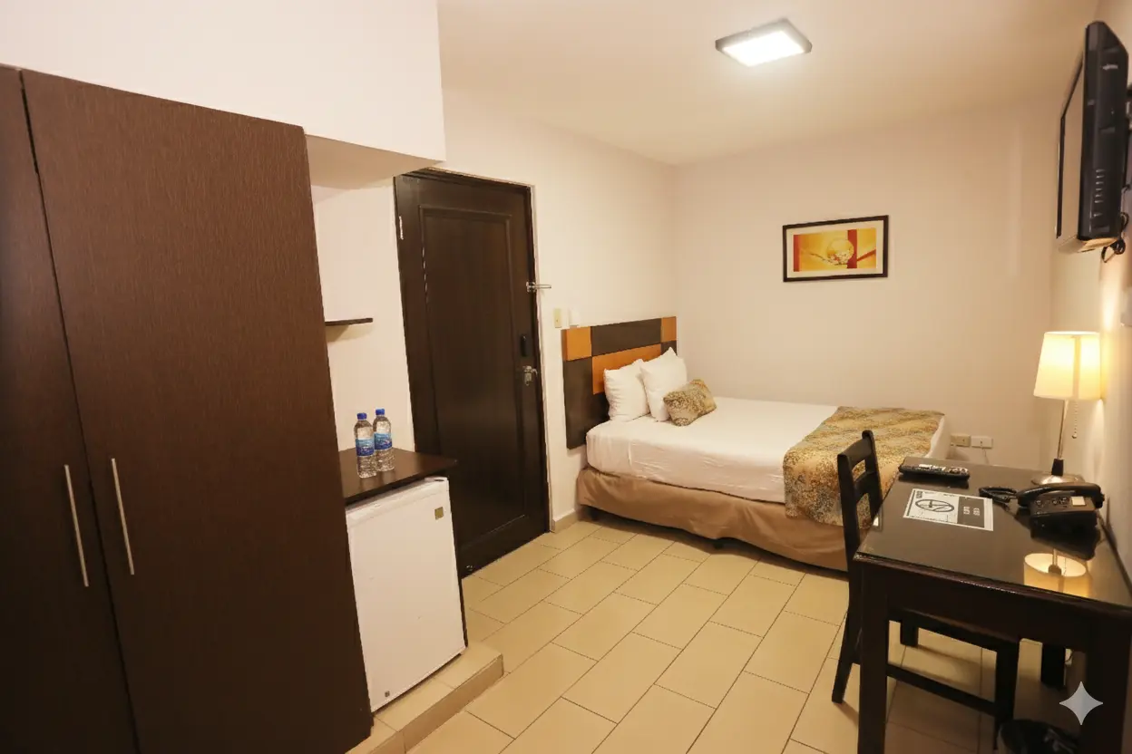 Acogedora y funcional, equipada con una cama doble, esta habitación está pensada para brindar una experiencia de descanso sencilla y cómoda, ideal para quienes buscan una habitación sencilla en Panamá para una estadía práctica y confortable. Es perfecta para viajeros solos, parejas o para estancias cortas, con un ambiente tranquilo que invita a relajarse. Su diseño equilibrado ofrece el espacio ideal para dormir plácidamente y recargar energías antes de continuar con tus actividades en la ciudad.